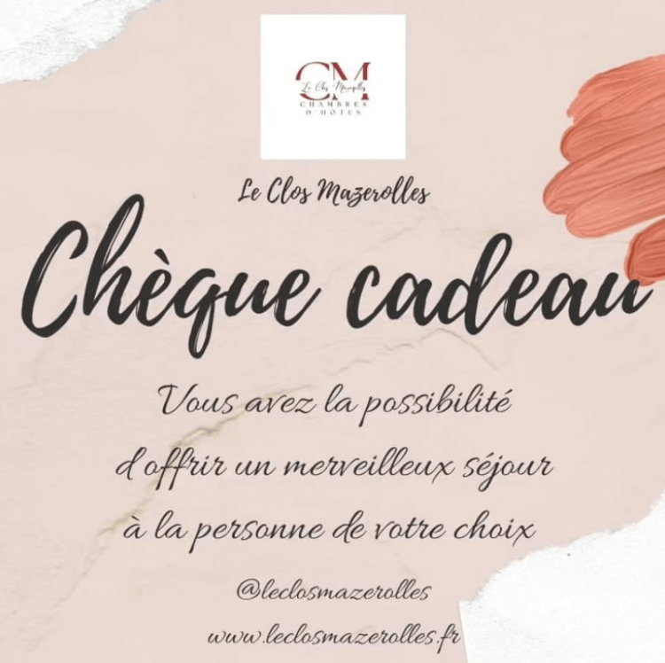 Vous voulez faire plaisir à un proche et vous souhaitez lui offrir un séjour au Clos Mazerolles ? C’est possible ! 🎁